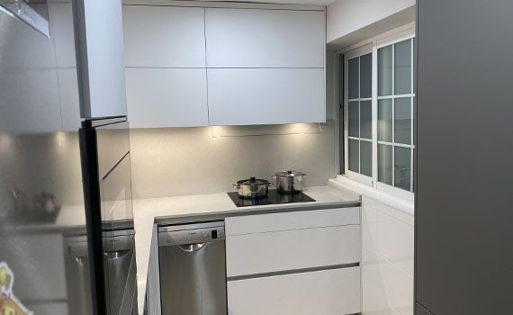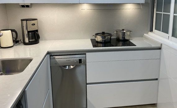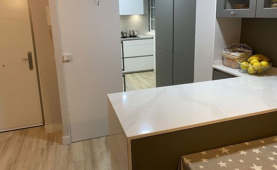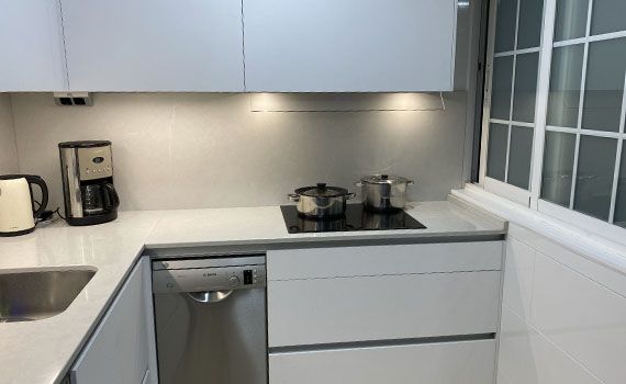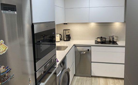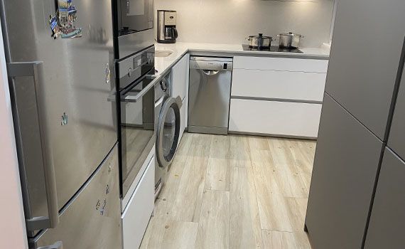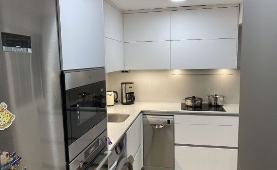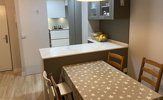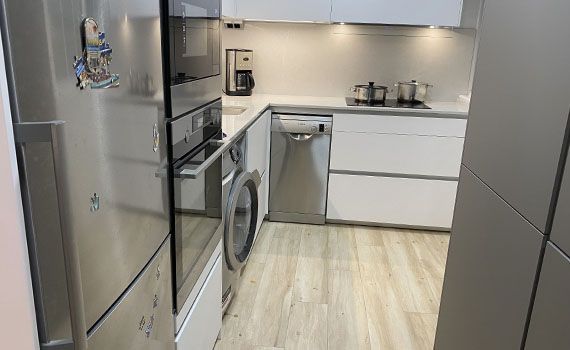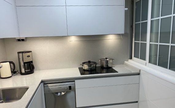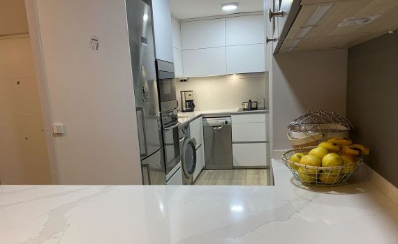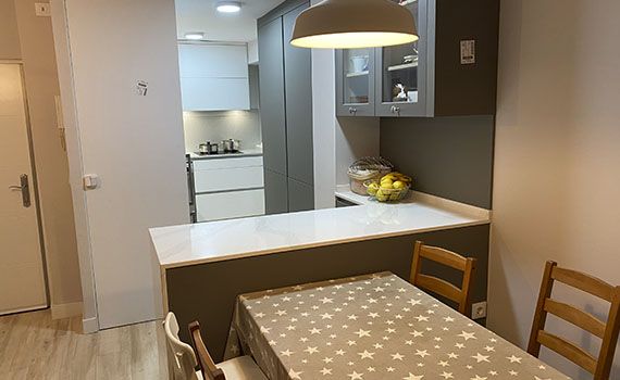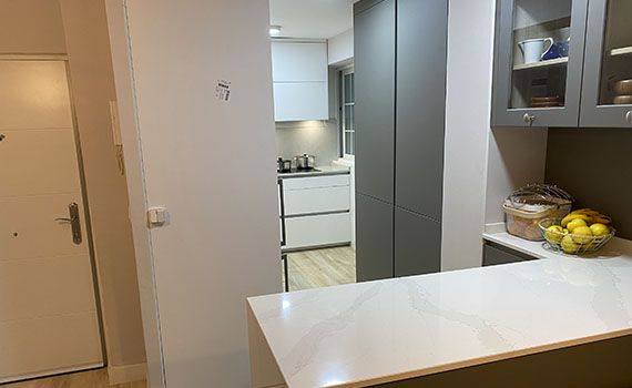 Así, como decimos, en este caso el objetivo de la reforma se centró en conseguir aportar a la vivienda una sensación de mayor espacio en la estancia resultante de unir el salón y la cocina.