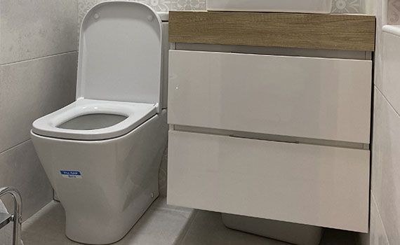 En lo que respecta a los cuartos de baño y el dormitorio se realizó de la siguiente manera. Del resto de la superficie del local se otorgó un espacio para el dormitorio al cual se le incorporó un cuarto de baño y por otro lado se creó un segundo cuarto de baño completo para uso general.