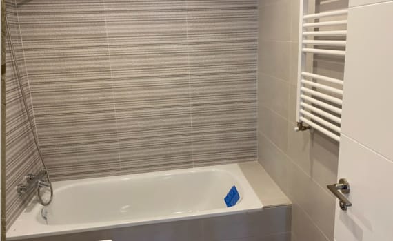 Así, tras la reforma quedarían los dos baños orientados en sentido diferente para su uso. Uno de los dos cuartos de baño está ubicado en suite en el interior del dormitorio principal, para su uso privado, mientras que el otro se sitúa en el pasillo de la vivienda y es de uso general.