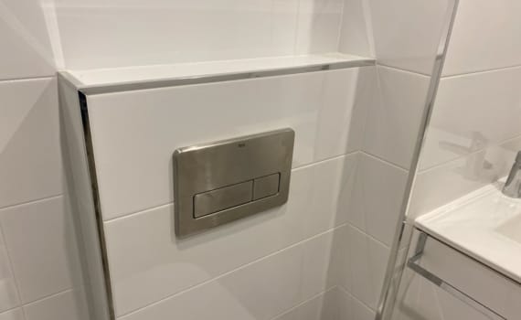 Cuarto de baño con inodoro suspendido y cisterna oculta