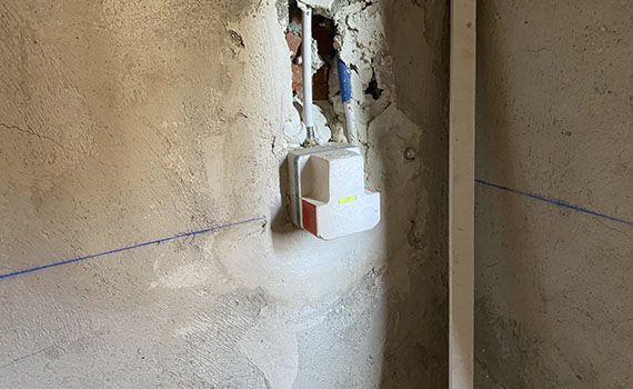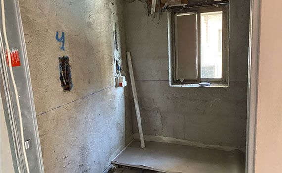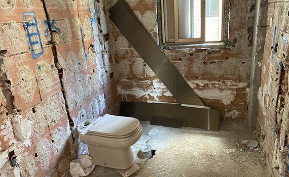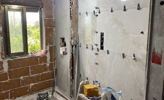 Una vez realizadas las instalaciones, se procede a preparar los paramentos con Mortero de cemento para la posterior colocación del material cerámico.