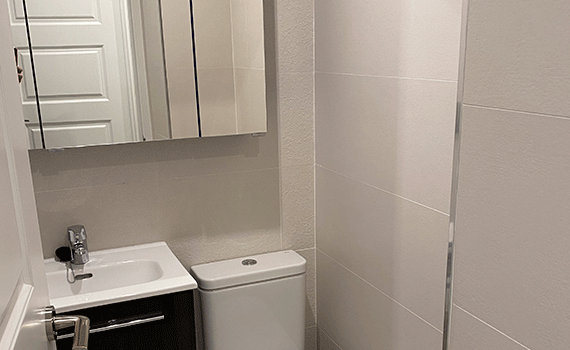 Una vez renovadas estas dos instalaciones se rehízo el enfoscado con mortero de cemento para aplicar en las paredes y nueva solera de cemento armado para aplicar a los suelos como soporte para la instalación de los nuevos azulejos.