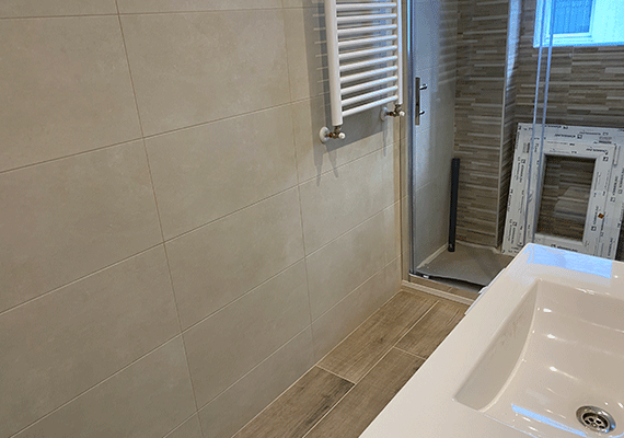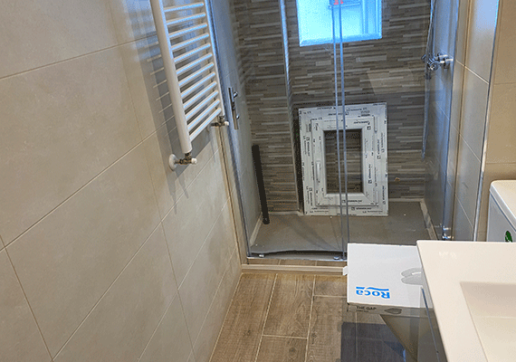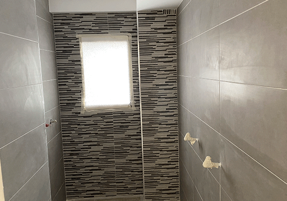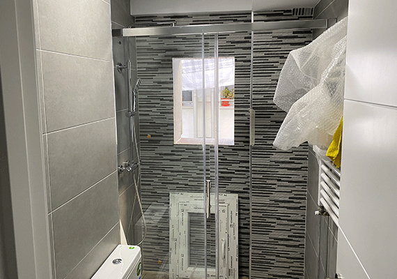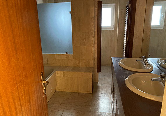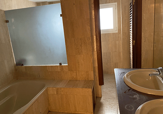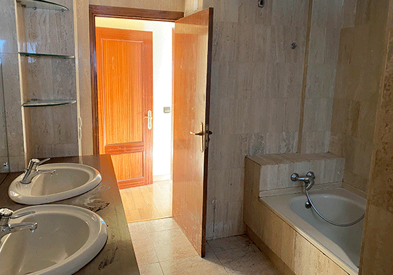 Debido al mal planteamiento realizado en la reforma anterior, los baños disponían de diferente superficie, de esta manera uno de ellos era muy grande y el otro considerablemente más pequeño. Esta circunstancia provocaba que el de menor superficie incluyese tan solo; lavabo, bidé e inodoro y por tanto quedase incompleto por no disponer de plato de ducha o bañera. Por ello, se realizó una redistribución del espacio de ambos baños, haciendo que este fue más equitativo y con ello permitir que los dos baños fuesen completos. Así, tras la realización de nuestra reforma, ambos baños contarán con todos los sanitarios, incluyendo de esta forma un plato de ducha en cada uno de los mismos.