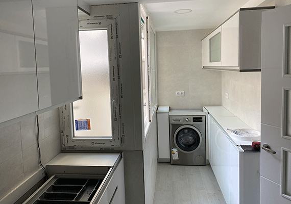 En la última fase de esta reforma se procedió a terminar de acristalar y sellar todas ventanas existentes en la vivienda, a montar todos los muebles que va a incluir la cocina. a dar la última mano de pintura en cada una de las paredes de la casa