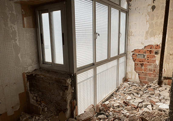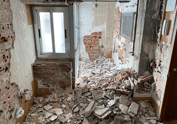 Como en todas nuestras reformas, los trabajos comenzaron desmontaje, picado y desescombro de todos los parámetros cerámicos de cocinas y baños, puertas y cercos, cajones, de persiana, ventanas, pavimentos, antiguas instalaciones y tabiquería viejas que ya no son necesarias en la vivienda para posteriormente realizar su traslado al contenedor y finalmente al punto limpio. Cumpliendo la normativa ecológica y mostrando una vez más nuestro firme compromiso con el cuidado del medio ambiente.