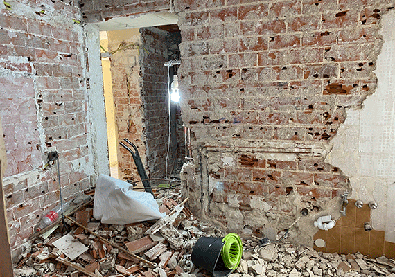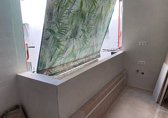 Tras la definición de los nuevos espacios, se levantaron los nuevos tabiques y tras ello, se realizaron todas las rozas que eran necesarias para realizar las nuevas instalaciones: fontanería, electricidad y climatización. Una vez realizadas tocas y cada una de las nuevas instalaciones y se prueba que todo lo realizado funcione correctamente.