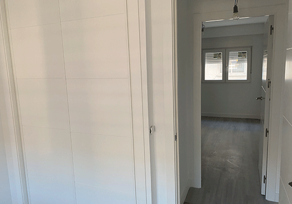 Posteriormente se colocaron los precercos para cada una de las nuevas puertas, se abren armarios y se procedió a la instalación de todas las ventanas. Una vez secadas todas las paredes, se comenzaron los trabajos de pintura. Estos comenzaron con el preparado de las paredes. Tras el alisado de las mismas se procedió a pintar cada una de ellas, dejando para el final de la obra la impregnación de la última mano de pintura.