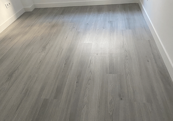 Como en todas nuestras reformas integrales, uno de los últimos pasos es la instalación de los suelos. Así, en este caso procedimos a instalar la tarima de madera en toda la vivienda a excepción de baños y cocina. A continuación de la instalación de la tarima, procedimos a instalar el rodapié en toda la vivienda.