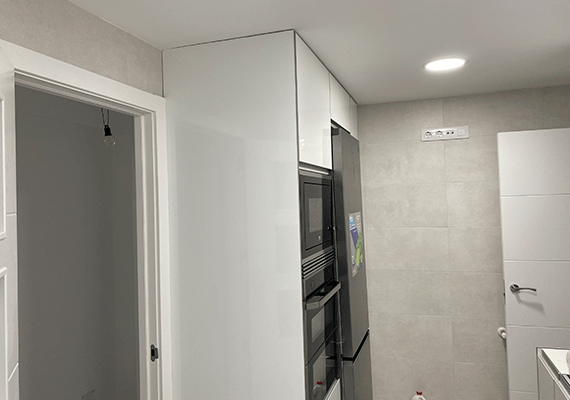 Además, el espacio quedo mejor repartido y se respetó la doble comunicación de los mismos con la cocina que ya estaba presente en la vivienda antes de nuestros trabajos de reforma. Cumpliendo así con las demandas y deseos de nuestros clientes.