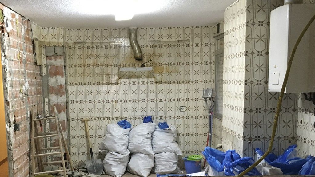 El día en se comenzó la obra, nuestro equipo de profesionales se persono preparado en la vivienda de nuestro cliente. En primer lugar, se realizaron los trabajos iniciales de demolición, picado y desescombro de los paramentos existentes en la cocina y los dos cuartos de baño originales.