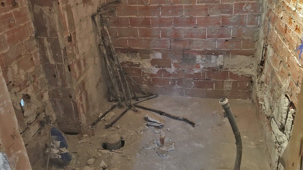 Posteriormente se retiraron los antiguos sanitarios, así como también las viejas tuberías de hierro y plomo para acto seguido realizar la completa rehabilitación de las instalaciones de fontanería, calefacción y electricidad.