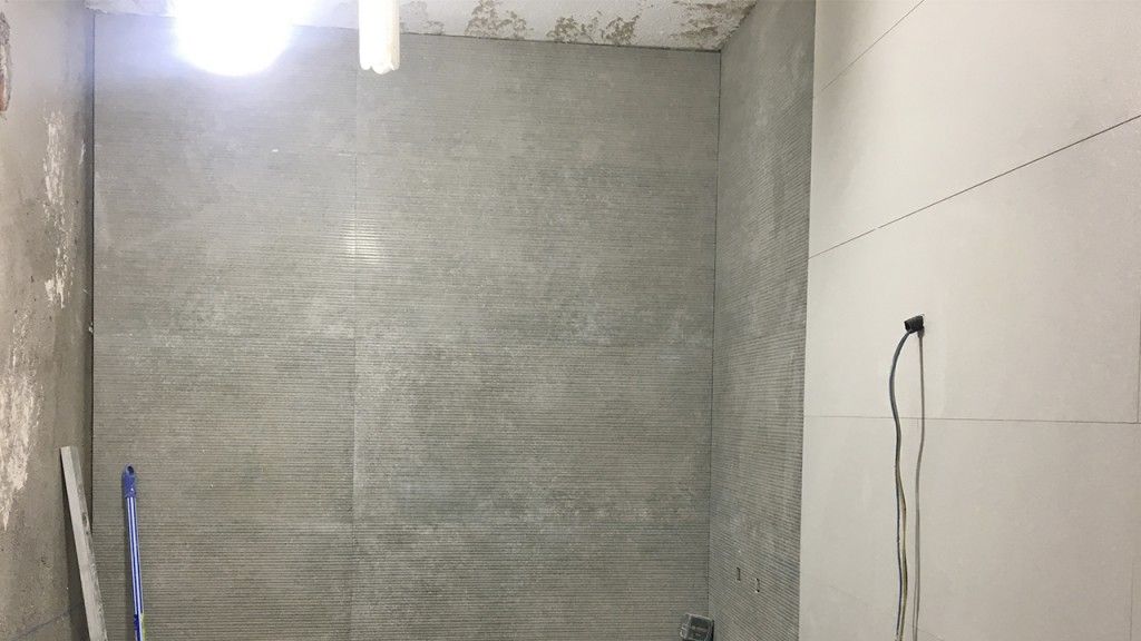 Tras la correcta instalación de agua, calefacción y luz el siguiente paso era la instalación de la nueva cerámica. Para ello, se prepararon las paredes y el suelo con un enfoscado del soporte en arena y cemento. Finalmente se realizado el pegado de los azulejos con el material de agarre de mortero que indica el fabricante.